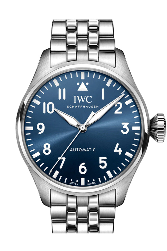 IWC Big Pilot On Bracelet Watch IW329304 Stainless steel case, Automatic, self-winding, Diameter 43.0 mm, Blue dial with luminescence, Stainless steel bracelet with EasX-CHANGE system, Strap width 21.0 mm. Made in Switzerland