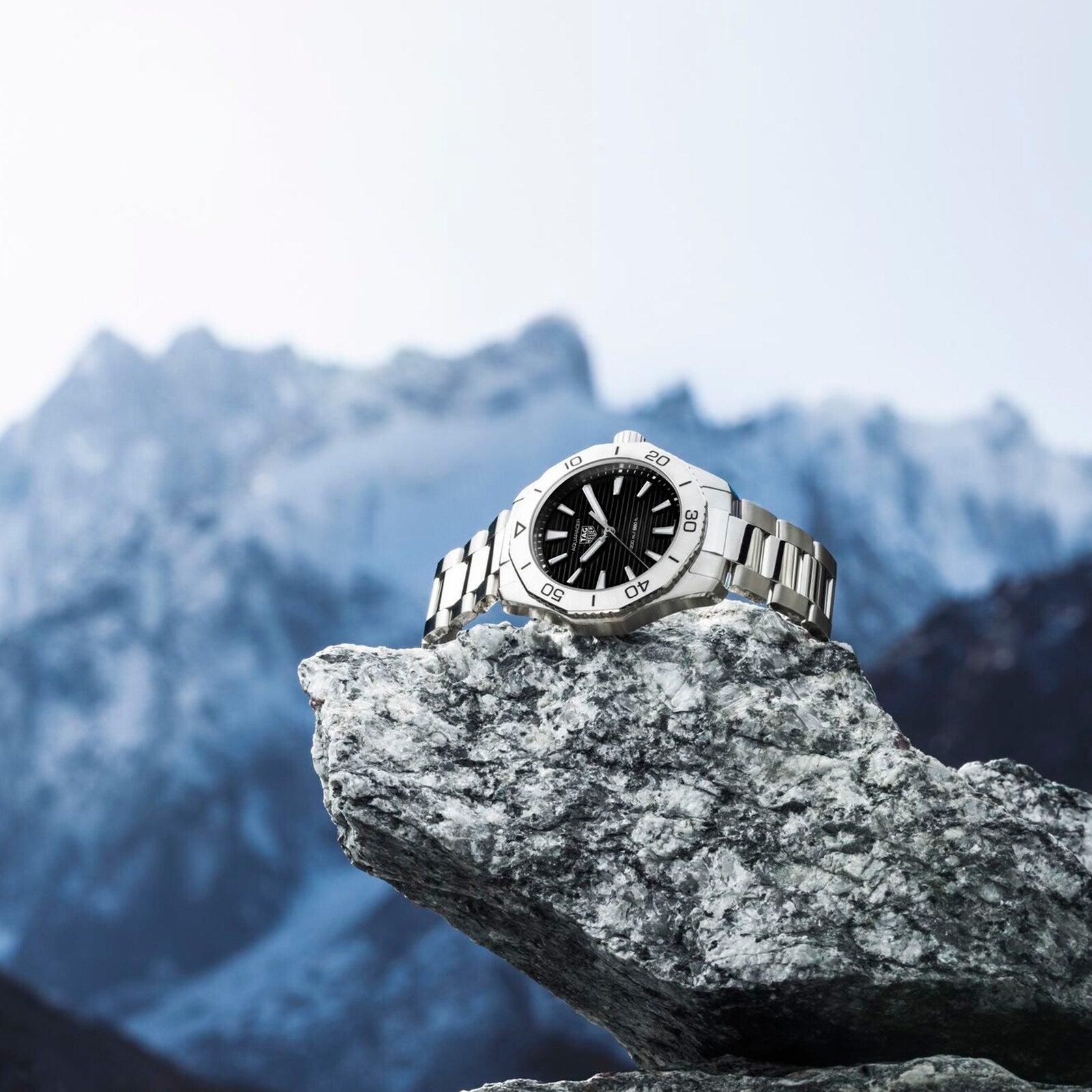 Aquaracer – pushing limits in search of greater performance An essential ally in your achievement Versatile 40mm stainless steel case with a co-ordinating steel bracelet Black sunray brushed technical dial with rhodium-plated hands and hour markers for optimum legibility Driven by powerful Quartz movement OVERCOME YOUR LIMITS Re-launched in 2021, the Aquaracer collection has re-written sports watch design and performance codes to take wearers beyond the edge as they push their limits in search of ever-greater performance. The Aquaracer Professional 200 collection unites robust construction with boldness of design. Prestigious and resilient, the 40mm stainless steel case embraces refined ergonomics and finishes, while the black sunray brushed dial features a bold horizontal pattern with rhodium-plated hands and indexes for enhanced visibility. ENDURE ANY CONDITIONS This versatile 40mm model pairs a stainless steel case with a co-ordinating steel bracelet, complete with double safety push buttons and a comfort extension link. Finished with a horizontal pattern, offering a nod to the decks of boats, the dial features luminescent hands and hour markers for legibility in even the most extreme environments. Incredible precision is provided by a reliable quartz movement, while water resistance to 20 bar (200 metres) further enhances performance.