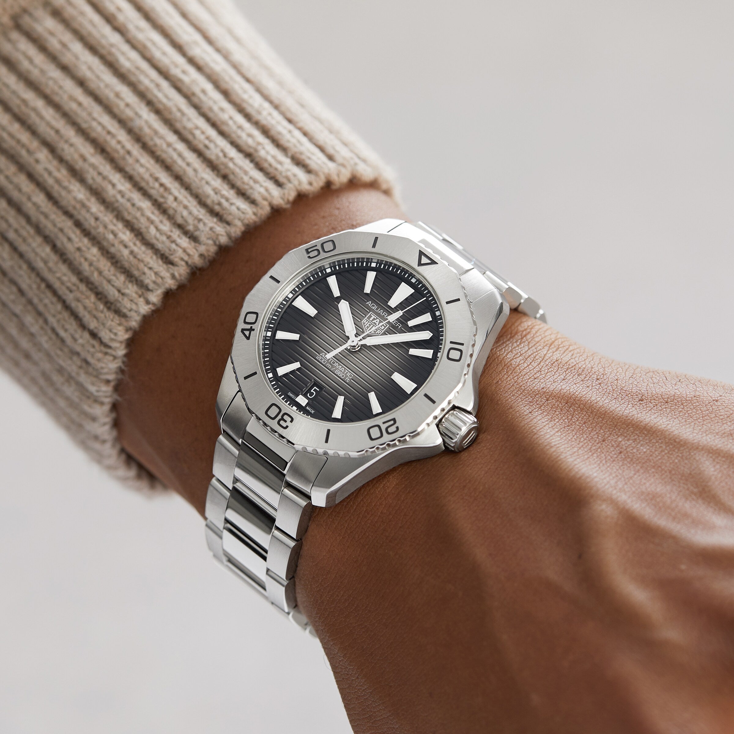 Aquaracer – pushing limits in search of greater performance A go anywhere, do anything watch Versatile 40mm stainless steel case with optimal ergonomics and finishing Black sunray brushed dial with a slightly smokey finish Powered by the automatic calibre 5 movement PUSH YOURSELF TO THE LIMITS Re-launched in 2021, the Aquaracer collection has re-written sports watch design and performance codes to take wearers beyond the edge as they push their limits in search of ever-greater performance. The Aquaracer Professional 200 collection raises the bar for versatility. Bringing together inspired performance and exceptional style, this Professional 200 Date model is characterised by its statement, brown sunray dial with a slightly smokey finish for an extra touch of drama. DRAMATIC DIAL The confident 40mm model pairs a comfortable, stainless steel case with a co-ordinating thin, tapered stainless steel bracelet featuring a comfort extension link. Luminescent hands and hour markers, and a date display at 6 o’clock further enhance the dial, while the calibre 5 automatic movement provides incredible precision and reliability. This timepiece is water resistant to 20 bar (200 metres) and features a 60-minute scale to keep track of the elapsed dive time.