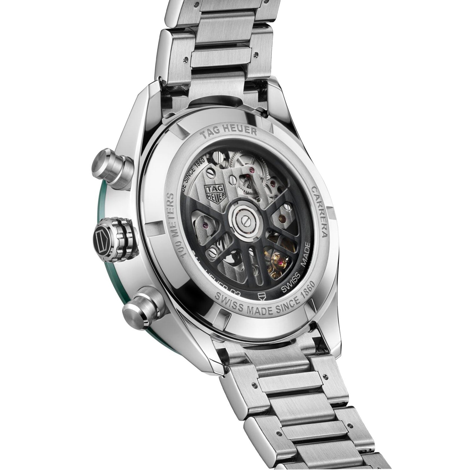 Carrera - embracing the spirt of endurance A distinct sense of style with a prestigious motor-racing heritage 44mm steel case with a co-ordinating bracelet Contemporary green brushed dial with luminous hands and hour markers Driven by the Heuer 02 calibre movement for exceptional reliability THE CARRERA COLLECTION Born on the racetracks in 1963, the Carrera collection embraces the spirit of endurance and outstanding performance. Designed for professional drivers, yet with an elegant sense of style, the collection pays tribute to the infamous Carrera Panamericana race. A sports watch more than equipped to keep pace with high achievers, this TAG Heuer Carrera 02 model offers all the prestige of its motor-racing heritage. Driven by the Heuer 02 calibre automatic movement, this sophisticated timepiece boasts a distinct sense of style, with a contemporary, green brushed dial punctuated with three green chronograph counters. JADE HORIZON This 44mm model pairs a brushed and polished steel case with a co- ordinating steel bracelet. Mounted to the case is the fixed bezel complete with a tachymeter scale. Protected by a bevelled sapphire crystal dome, the striking brushed green dial is enhanced with rhodium plated hands, three chronograph counters, a date display, and indexes filled with Super-LumiNova® for incredible readability in all conditions. The screw-down sapphire case back reveals the Hauer 02 calibre movement at work, while an 80-hour power reserve ensures flawless performance.