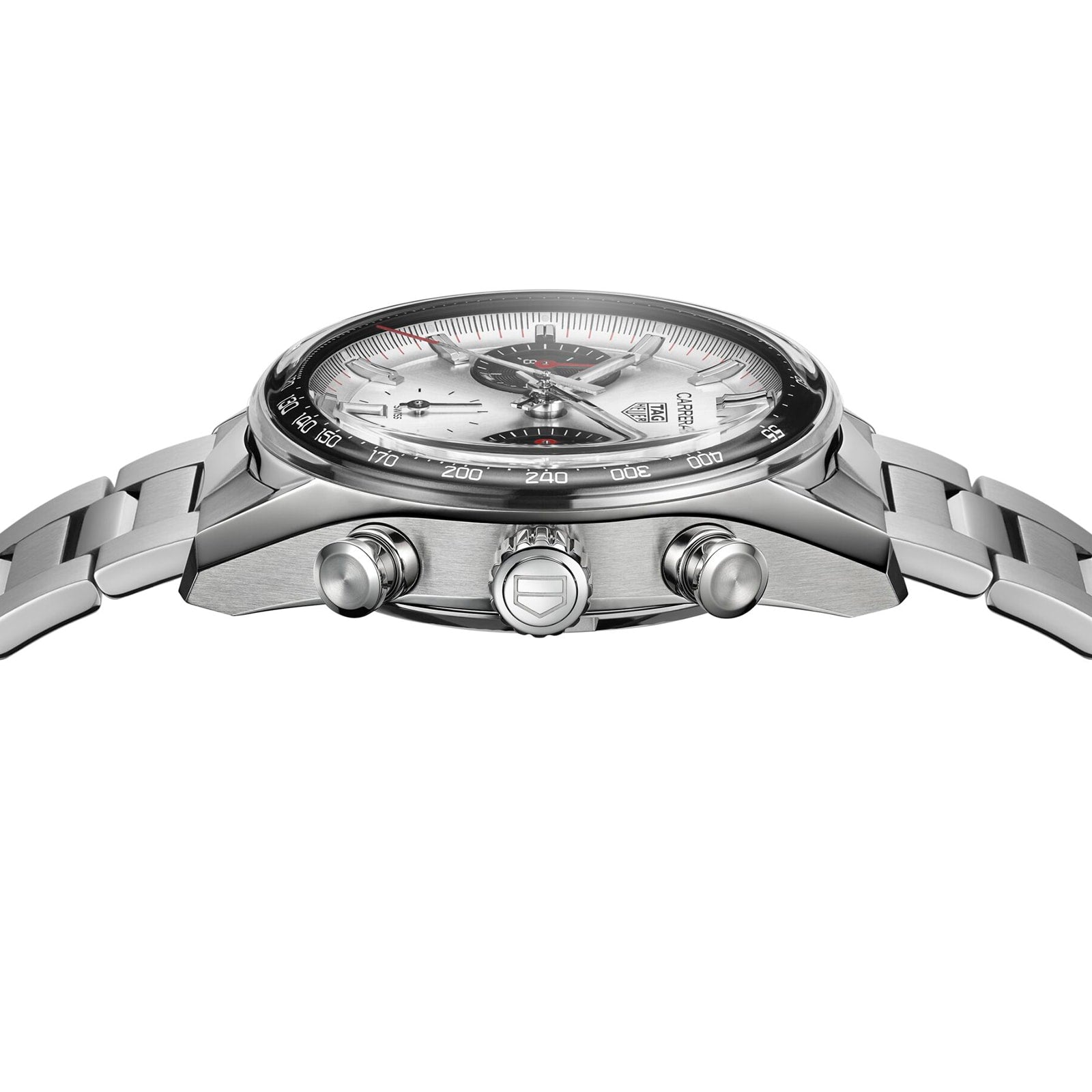 Carrera - the rebirth of a legend Presented in a 39mm steel bezel-free case with a co-ordinating three-row bracelet Silver sunray brushed dial with twin black azure sub-dials Driven by the in-house TH20-00 automatic movement Complete with an 80-hour power reserve and water resistance to 10 bar (100 metres) A TRIBUTE TO THE CARRERA PANAMERICANA RACE Born on the racetracks in 1963, the Carrera collection embraces the spirit of endurance and outstanding performance. Designed for professional drivers, yet with an elegant sense of style, the collection pays tribute to the infamous Carrera Panamericana race. A SIGNATURE DESIGN WITH A MODERN TWIST Designed for a new era of racing and heritage enthusiasts, this Carrera model features a bezel-free, 39mm steel case paired with a chic three-row steel bracelet. Covered by domed sapphire crystal, the silver sunray brushed dial features twin black azure sub-dials, while the curved flange ensures optimal legibility. Driven by the in-house TH20-00 automatic movement, this watch is equipped with an 80-hour power reserve and water resistance to 10 bar (100 metres). A seamless blend of the brand's rich past and innovative future.
