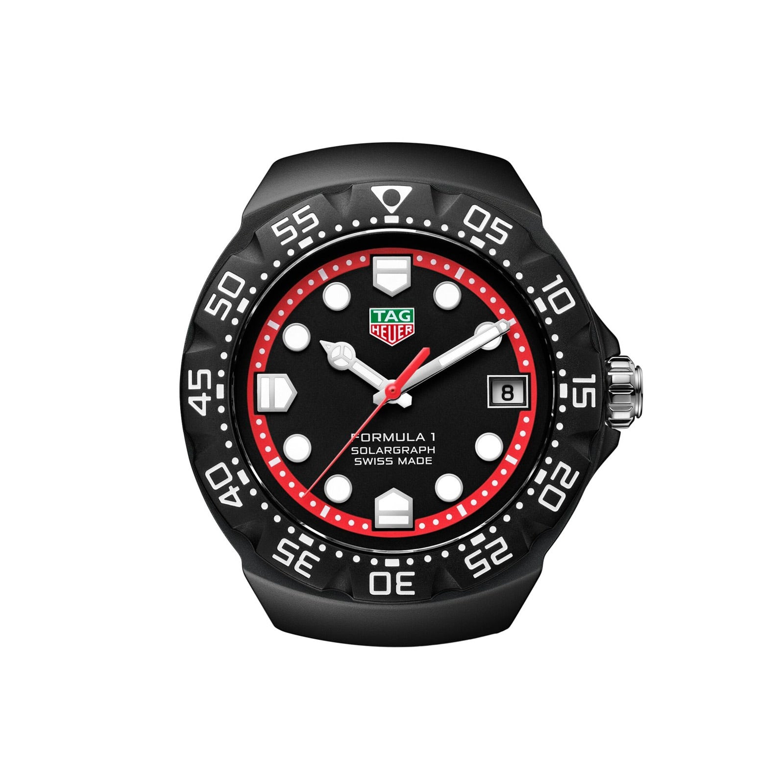 Featuring the state-of-the-art solar-powered Calibre TH50-00 movement, the TAG Heuer Formula 1 Solargraph (38mm) showcases a bold design with its black DLC case and red accents. With its TH-Polylight bezel and versatile black rubber strap, this timepiece combines cutting-edge technology with a bold, contemporary style.