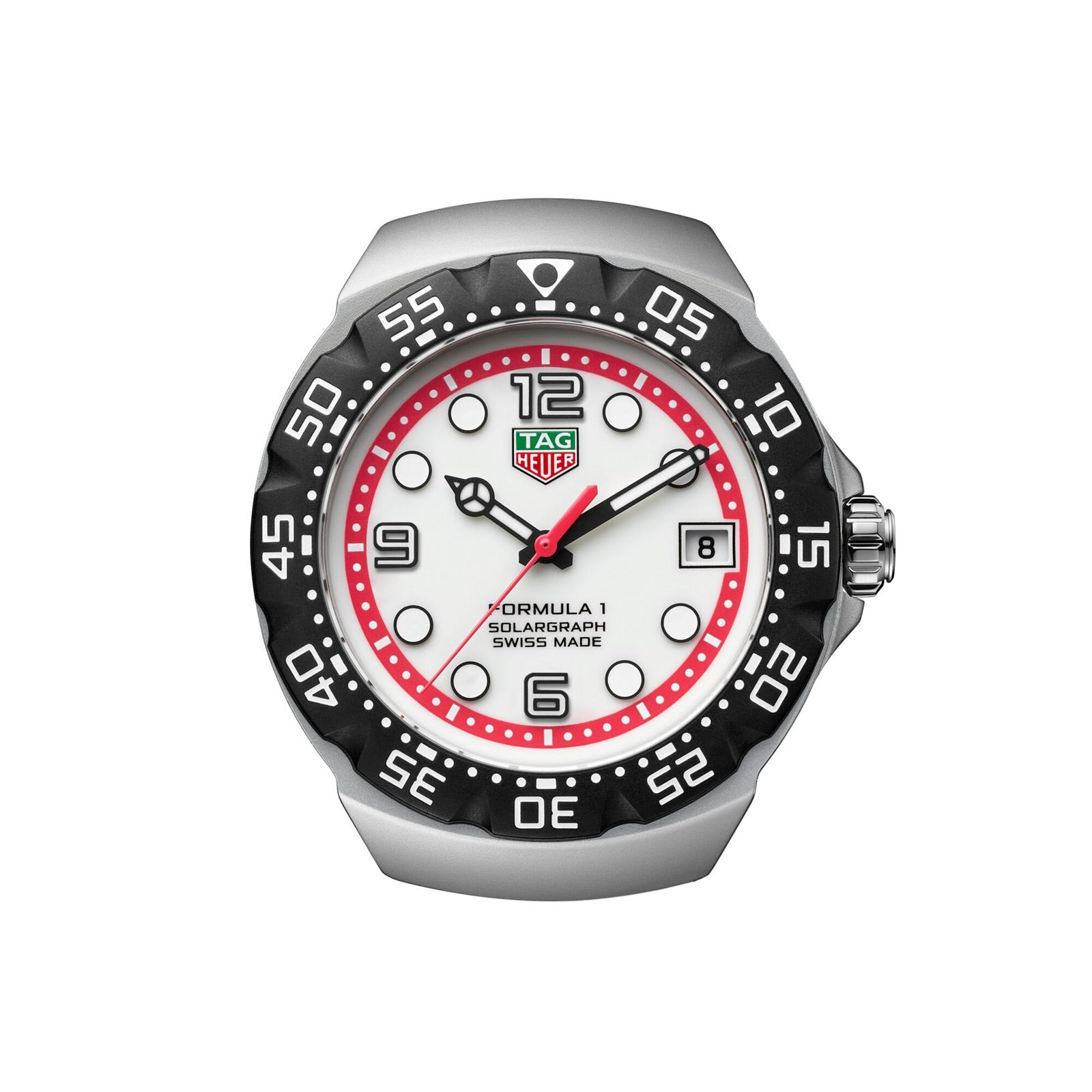 The TAG Heuer Formula 1 Solargraph (38mm) blends sporty design and cutting-edge innovation with its red-accented dial and solar- powered Calibre TH50-00 movement. Featuring a black TH-Polylight bezel, a flexible racing rubber strap, and high autonomy, this watch offers both style and performance for the modern wearer.