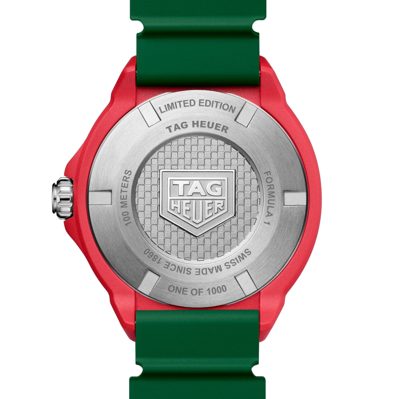 A unique, colour-driven design comes to the forefront with the TAG Heuer Formula 1 Solargraph (38 mm). Its striking combination of red and green TH-Polylight makes this timepiece an exciting addition to the Formula 1 collection, offering solar-powered performance and a playful, dynamic look