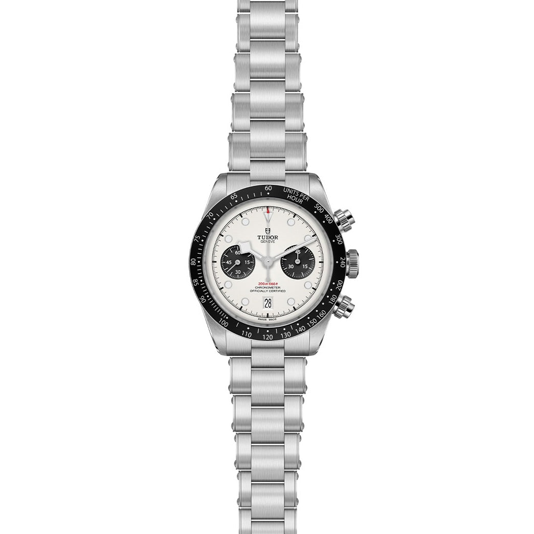 The model is available mounted on a 5-link stainless steel bracelet or a 3-link stainless steel “rivet style” bracelet inspired by the folding riveted bracelets made by TUDOR in the 1950s and 1960s. Both bracelets feature TUDOR’s “T-fit” rapid adjustment clasp. Easy to use, requiring no tools and offering five positions, this practical system allows wearers to carry out a fine, instant adjustment of the total length of the bracelet along an adjustment window of 8mm. The Manufacture Chronograph Calibre MT5813, which powers the Black Bay Chrono model, displays hour, minute, second, chronograph and date functions. It has the finish typical of TUDOR Manufacture Calibres. Its rotor in tungsten monobloc is openwork and satin-brushed with sand-blasted details, and its bridges and mainplate have alternate sand-blasted and polished surfaces with laser decorations.