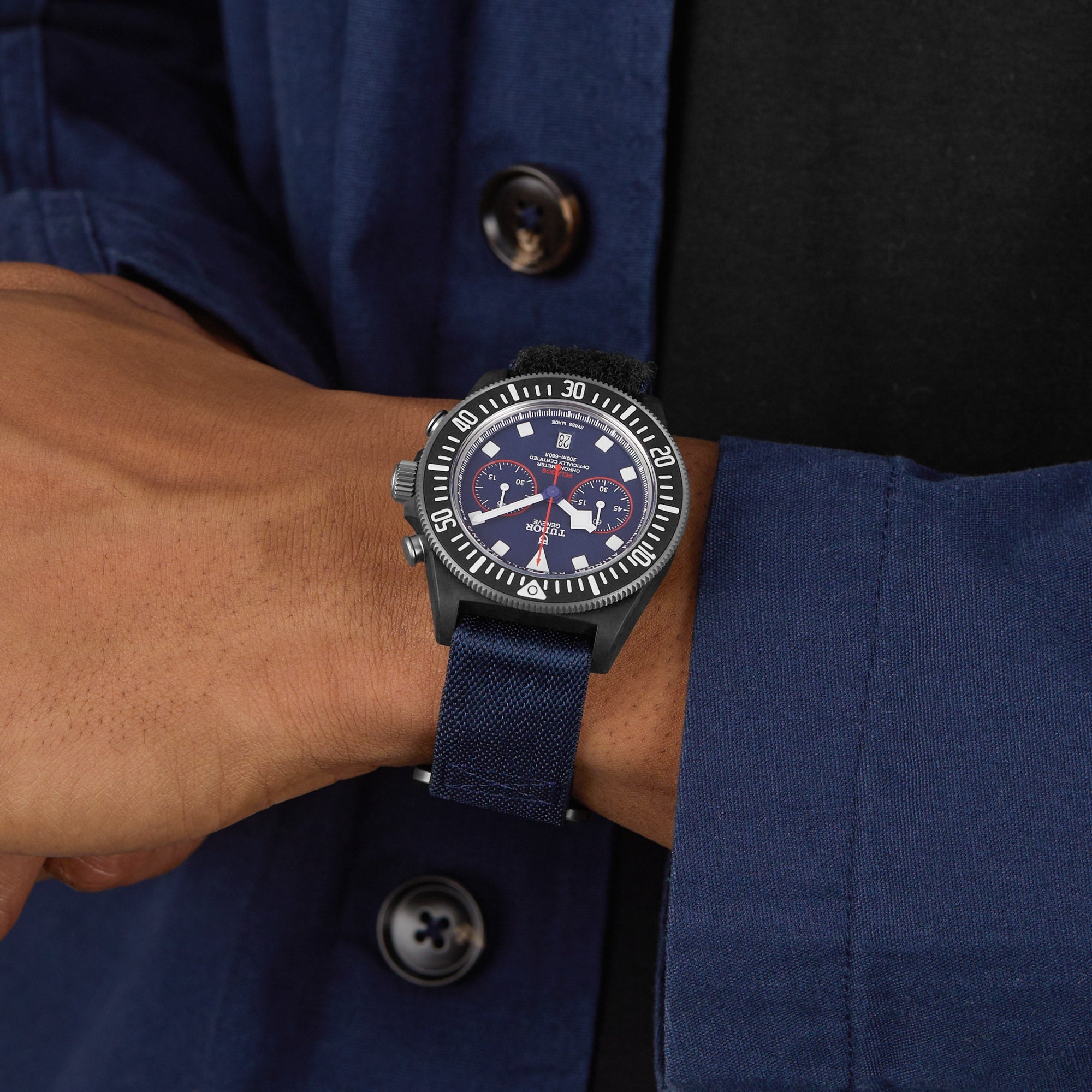 The Pelagos FXD model, where FXD refers to the extra robust fixed strap bars of the case, was developed in conjunction with the French Navy's combat swimmers. Waterproof to 200 m (660 ft), it was designed for underwater navigation and is optimized for professional use.